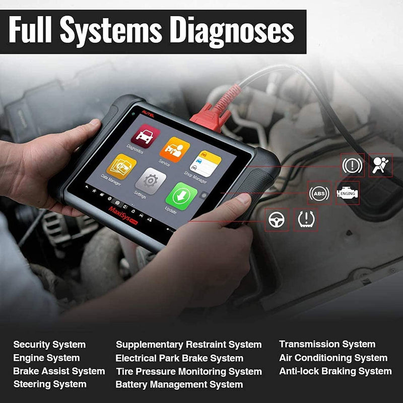 Autel MaxiSYS MS906S is an 8-inch touchscreen Android-based advanced diagnostic tablet powered by a hexa-core processor. It features 64GB memory and the Bluetooth-enabled VCI Mini with extension for easier OBDII port attachment. The MS906S features advanced diagnostics including active tests and bi-directional controls. Features include Scan VIN optical VIN/barcode recognition for quick vehicle identification, FCA Secure Gateway Access with AutoAuth subscription, Pre/Post-SCAN customizable reports, and forthcoming Cloud Data management and Repair & Diagnostic Database. The MS906S is packaged in a blow-molded case, includes free technical support, and one-year free software updates with one-year limited warranty.